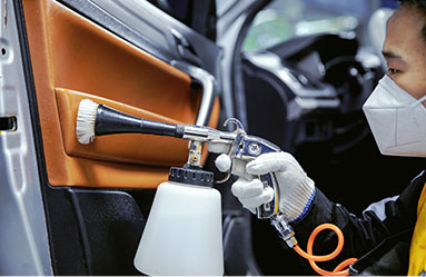 精洗部(进口水蜡精致洗车、发动机去污、塑胶还原、轮毂清洗、 轮胎上光保养、车内去味消毒、干洗脚垫等)。